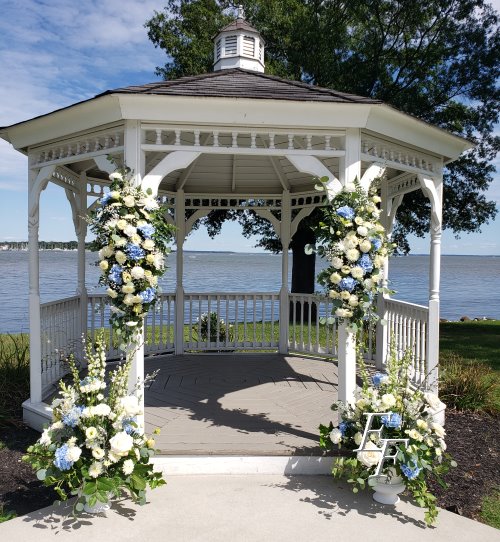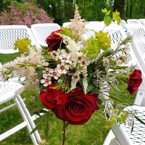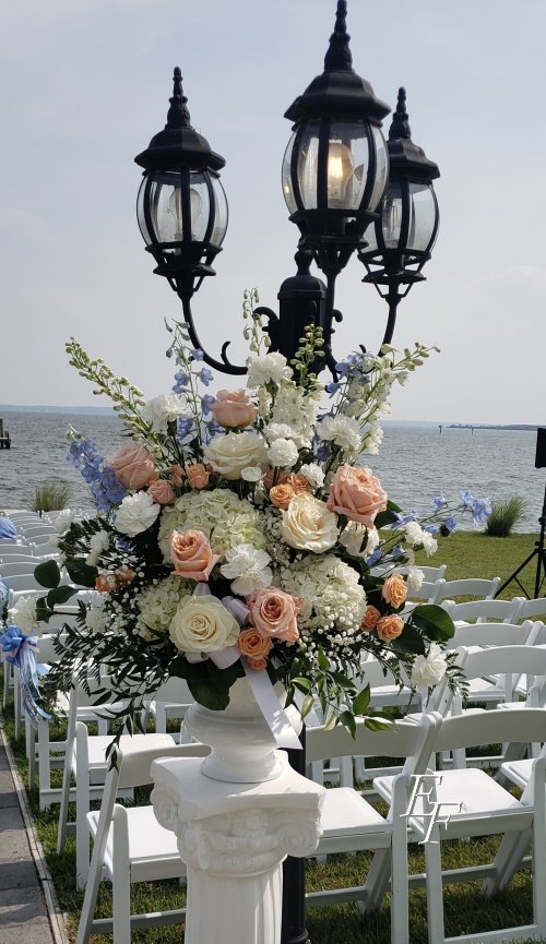 When planning how you want to decorate your aisle and your ceremony location, always consider how the floral designs can also be used at your reception.  Make sure you have someone, like an event planner or event coordinator who would be available to move your flowers to designated locations at the reception right after your ceremony.