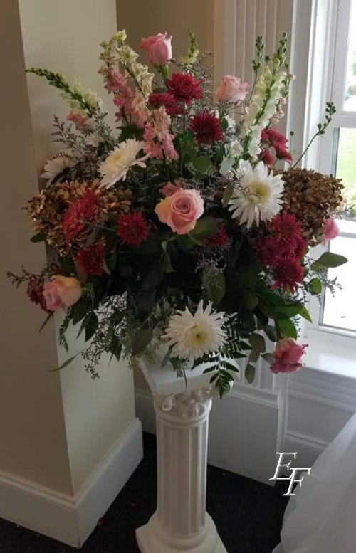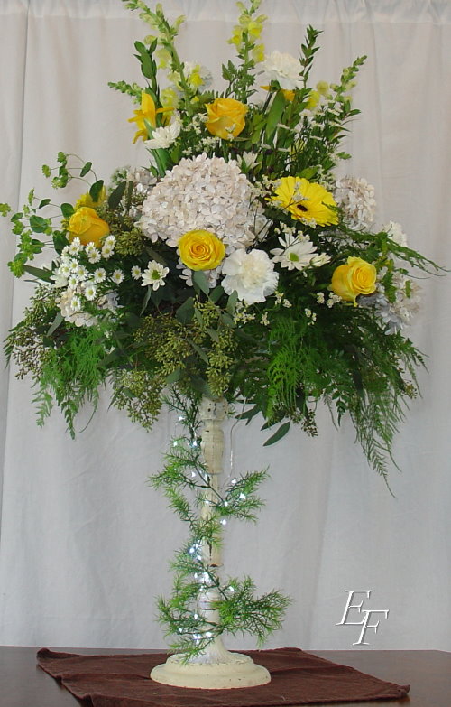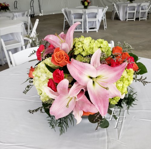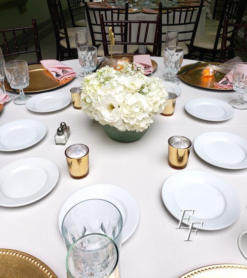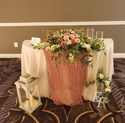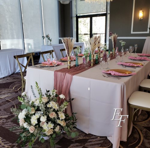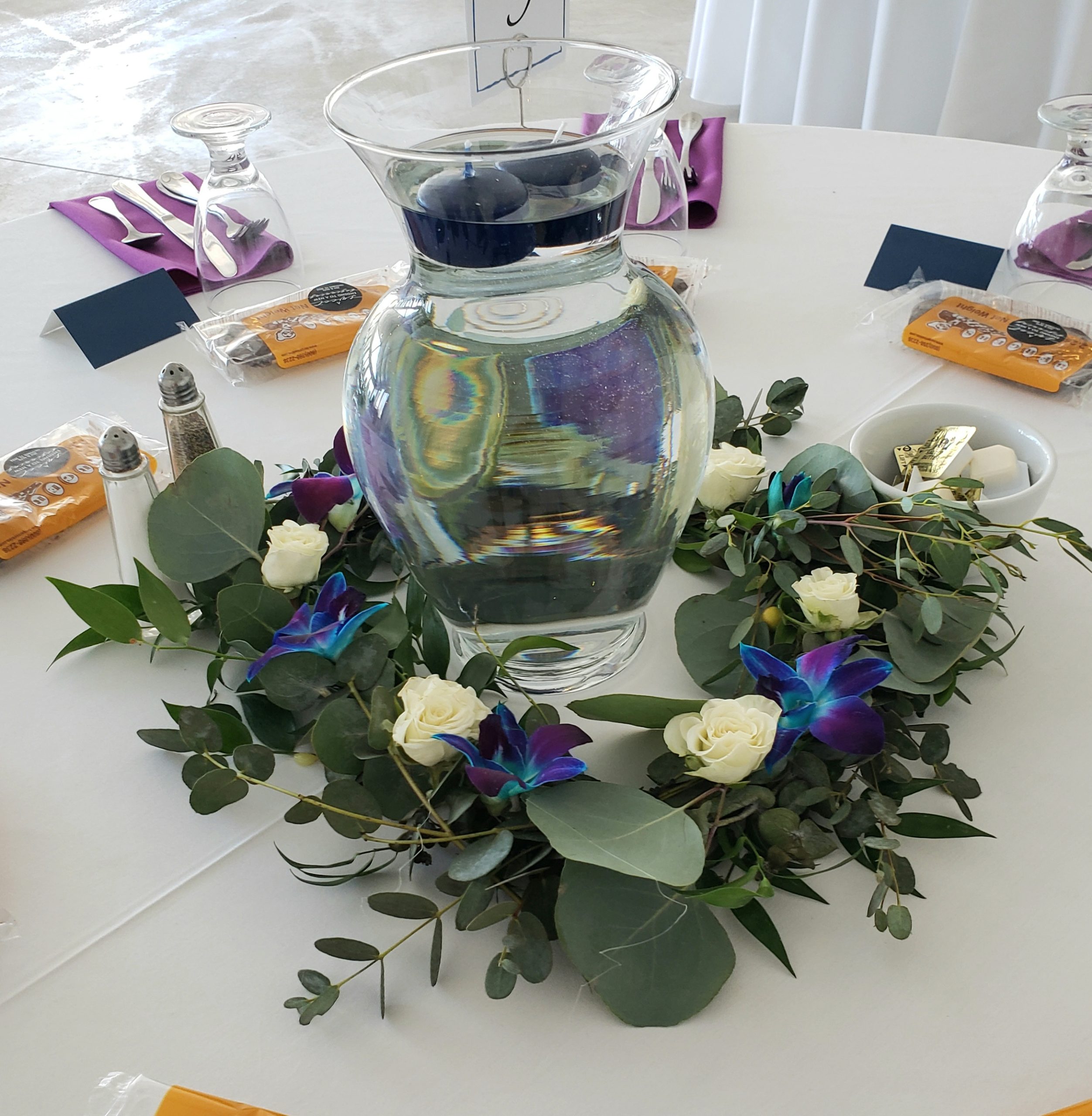 Reception flowers can be simple or elaborate, and should coordinate with your theme. Make use of your ceremony flowers and then fill in. Centerpieces should be a priority. After that, depending upon your budget and taste, you can add flowers to your cake table, memorial table, gift table, buffet, cocktail table and bar.