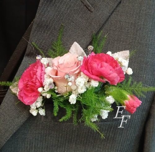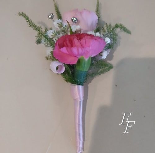 If pink is your color, our Shades of Pink Corsage is for you! Light pink sweetheart roses combined with deep pink miniature carnations make a stunning combination! You may also choose to add a matching boutonniere.