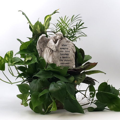 Our Treasured Memories plaque is surrounded by an assortment of green plants suitable for indoors. Our plaque is 7″ and reads: When someone you love becomes a memory, the memory becomes a treasure. As we are a growing operation, we make the gardens ourselves ensuring better quality and value for our customers. Our plant assortments and baskets vary depending upon availability. All planters come with a bow, if you require a specific color bow or flower color, please note in the special instructions.
